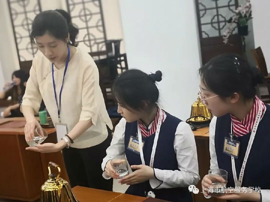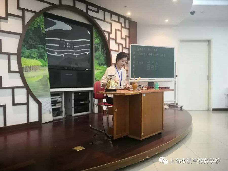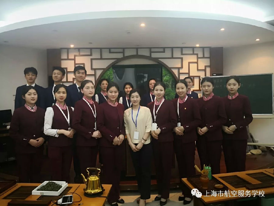 为积淀航校学生的中国茶文化知识,弘扬祖国优秀传统文化, 2019年4月25日下午,我们航空服务学校第八届星光计划选手在语文教研组长马惠明老师的带领下,前往上海市职业培训指导中心参加茶艺课。在这所有着深厚历史底蕴的立本堂里,跟随国家高级茶艺师一起学习茶艺,感受传统茶文化,以此美心修德,陶冶情操。