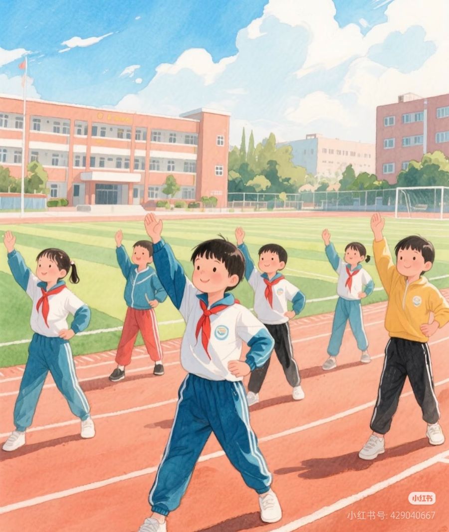 操场上,广播里的指令声刺破晨雾,全校早操比赛正式开始。我们班的方阵刚站定,我的手心已沁出冷汗,生怕记错转身的节拍——上周排练时,队伍总因这点乱成“麻花”。