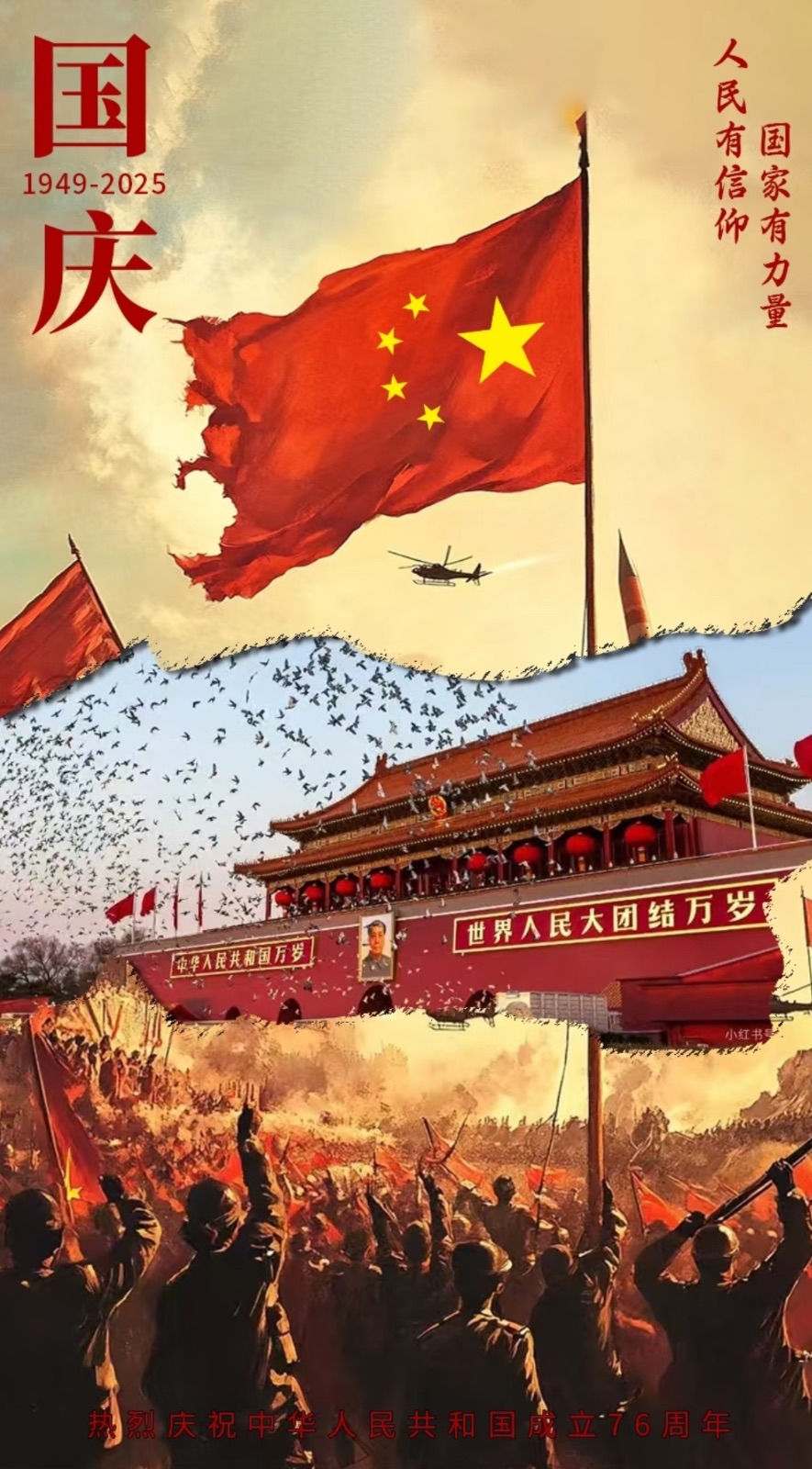迎国庆,不仅是庆祝一个节日,更是传承一种精神。让我们在五星红旗下庄严宣誓:接过先辈的火炬,肩负民族的希望,用实际行动书写新时代的华章。愿祖国山河无恙,繁荣昌盛;愿红色薪火,代代相传。