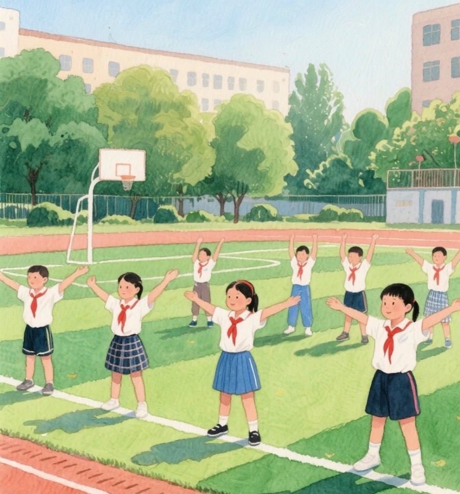 上周一下午,我们在操场上进行了一场广播操比赛。