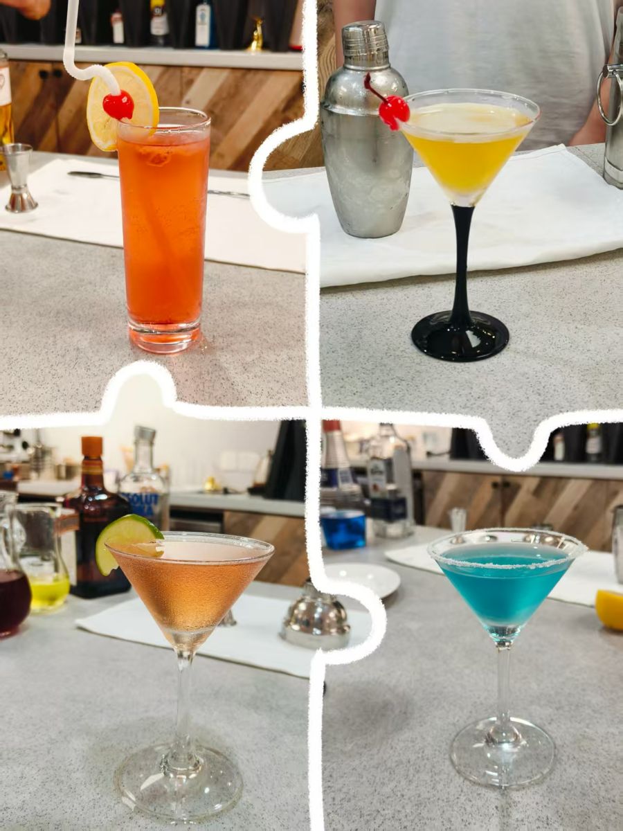 和同学们凑在一块儿调酒,简直是每周最期待的时刻。能够学到不同风格的酒,有橘红,金黄,粉棕,蓝色,加原料时都需要控制精准的量,稍有差池调出来的颜色就会有很大差别,每一杯漂亮的鸡尾酒都是我们和老师一起捣鼓出来的成果。