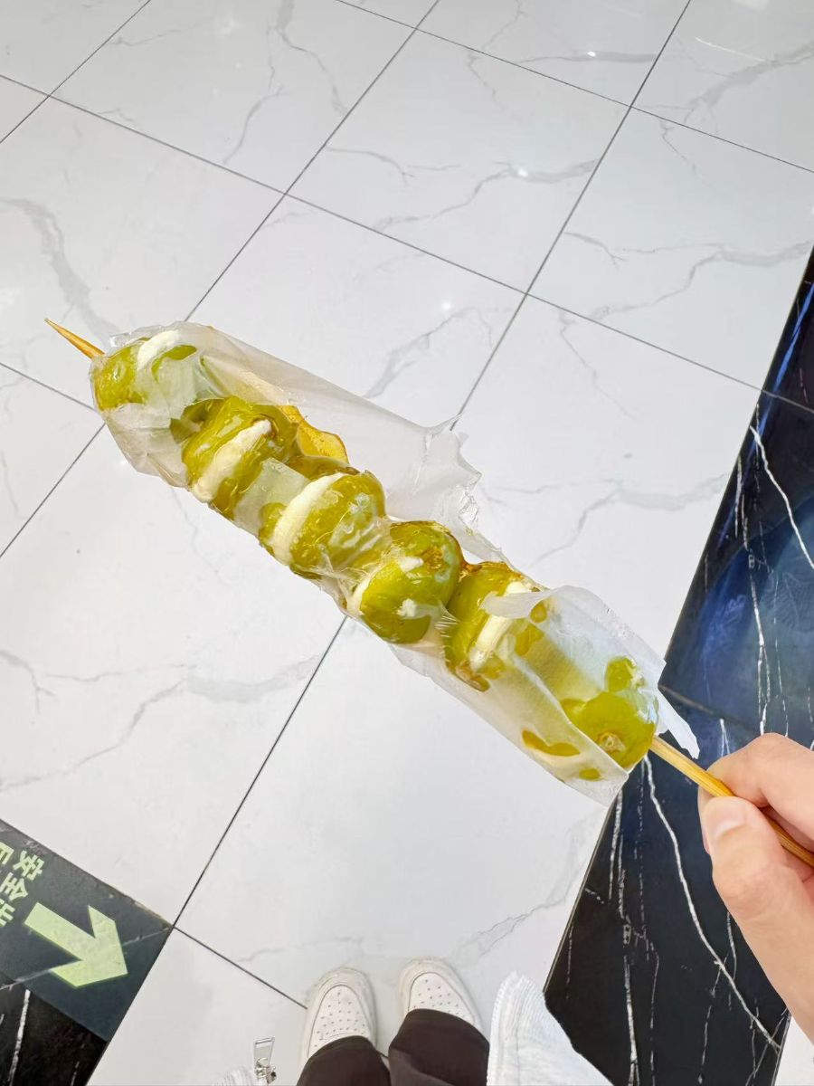 接过糖葫芦时,指尖传来一丝凉意。轻轻咬下,“咔嚓”一声脆响,糖壳在齿间绽开,甜味瞬间漫上舌尖。紧接着,山楂的酸软绵密在口中化开,恰到好处地中和了糖的甜腻。酸与甜在味蕾上交织,仿佛高中生活的缩影—— 有刷题备考的酸涩,也有解出难题后的甘甜。我举着这串亮红,慢慢走在熙攘的商场里。糖浆的甜香和果子的微酸在唇齿间流转,身边嘈杂的人声仿佛都远了,只剩下这一刻简单的满足。这串小小的糖葫芦,不仅满足了味蕾,更像一个甜蜜的注脚,为忙碌的学习生活按下暂停键。