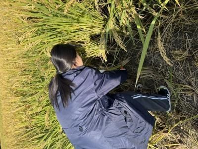 稻穗便握在手里。一开始我总割不齐,还差点划伤手,身旁的同学连忙过来教我调整姿势。慢慢熟练后,我们分工合作,有的割稻,有的把稻穗归拢成堆。