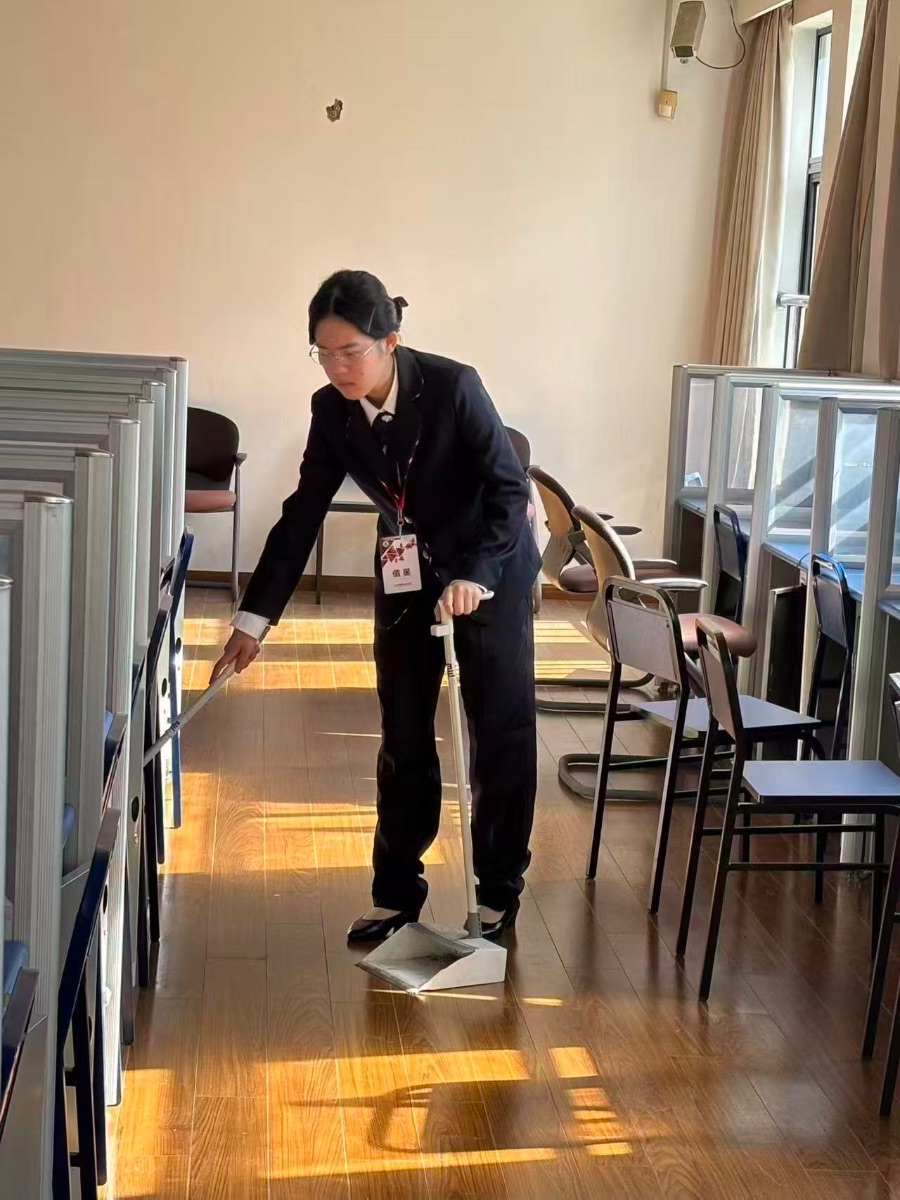 值星是我在之前学校中从未有过的事情,在我经历过值星后,我发现是这是一项独特又很有意义的活动。它给了我一次机会,可以参与到学校的劳动中,让我能切身体会劳动的意义,这是我在之前的学习经历中从未接触过的。劳动是中华优秀传统品质,劳动不是一个人的事情,是大家的事情。劳动促进了我个人的进步,增进了我解决问题的能力,培养了我的责任感,锻炼了我的意志。我很高兴能参与这次的值星,在值星的过程中,我感觉到我成为了商贸的一份子。