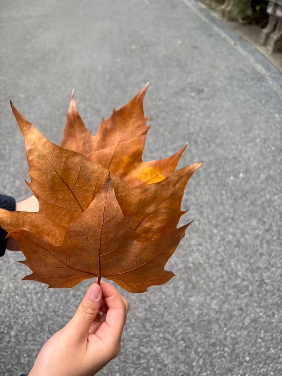 秋天的公园像打翻的调色盘,我蹲在小径旁捡树叶。梧桐叶金脆,一捏就碎成光;银杏叶像小扇子,叶脉排着细密的针脚,我把它夹进速写本当天然书签。枫叶最调皮,红得发暗,边缘卷成杯,接住一束斜阳光,像盛了暖酒。风一过,叶片哗啦赛跑,我追着跑,鞋底踩碎几片,脆响像远处有人在嚼薯片。篮子里渐渐堆起一座彩色小山:深紫的栾树果、焦黄的槐叶、带虫眼的樟片。我抬头,夕阳正把树影拉长,像给我也画上一片巨大叶子。我带着满篮秋色回家,它们将在我的桌面上,继续慢慢干燥,发出沙沙声。