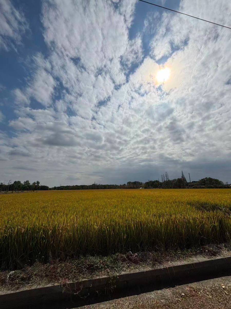 秋日午后的嘉北郊野公园,稻浪翻涌着金红暖意,踩进松软的田间,指尖触到沉甸甸的稻穗,带着阳光晒透的干爽气息。跟着农户学握镰刀,刀刃贴着稻根挥舞。一束束稻禾带着脆响倒下,掌心很快便沾上了稻香参杂着些许泥土。谷粒饱满得撑胀了稻壳,风一吹便簌簌作响,像是在诉说着丰收的喜悦。弯腰劳作的时刻,听着风声,稻叶的摩擦声,城市的喧嚣在此刻与世隔绝。傍晚捧着亲手收割的稻穗,看着夕阳为稻田镀上的一层层金边,才懂得每一粒米的金贵,每一粒米的来之不易,也拾得一份郊野秋游独有的踏实与欢喜。