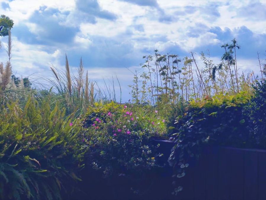 蹲下来看这一丛丛的草木,高的蒲苇在风里晃着穗子,矮的蕨类裹着绒绒的绿,连那几星粉花都是怯生生的——原来秋天从不是“萧瑟”两个字就能概括的,它更像生活里的小确幸:看似普通的日常里,藏着植物们拼尽全力的舒展,哪怕是角落里的藤蔓,也在悄悄绕着栏杆生长。