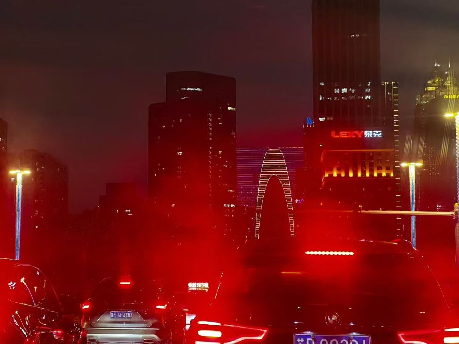 “LEXY 莱克”的灯牌在楼体上亮着,旁边的建筑泛着冷白的光,和这抹红撞出几分迷离的热闹。路灯的暖黄混在红雾里,把车辆的轮廓揉成软乎乎的色块,空气里像飘着引擎的轻响,还有这层红光里藏着的、城市夜晚特有的微醺感。
