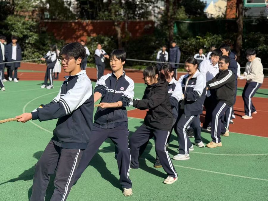 尽管中间的红布条一点点被对方拉过去,但没有一个人提前松手。直到结束的哨声响起,他们才力竭地松开绳子,手掌全被磨得通红,大口喘着气。