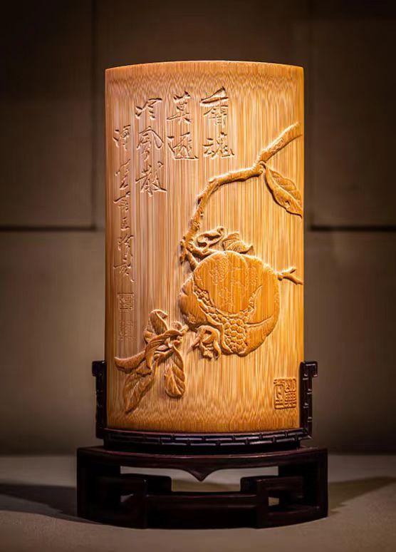 它以竹子为载体,运用浮雕、透雕、圆雕等多种技法,将书画艺术与雕刻工艺完美融合。题材广泛,涵盖山水、人物、花鸟、书法等,作品兼具文人气息与工匠精神。
