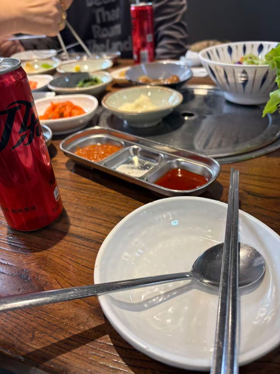 五花肉是永远的主角。看着它从粉白变得微黄,边缘卷曲、泛起金黄酥脆的焦边,是最诱人的慢镜头。用剪刀“咔嚓”剪开的脆响,是餐桌上最悦耳的音符。蘸一点干碟,包进生菜叶里,一口塞下。脆、嫩、烫、香、辣,各种口感在口中混战、融合,最后统一成直冲脑门的满足感。