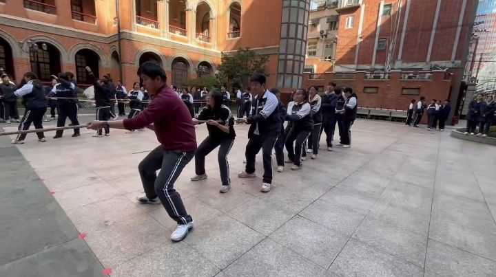 随着裁判哨声响起,绳子瞬间绷紧,我双手死死攥着麻绳,手臂青筋都鼓了起来,脚下像生了根似的扎在地上。耳边全是同学们的呐喊声,“加油!加油!”的口号此起彼伏,每一声都让我浑身充满力量。对面三班的力气也不小,绳子中间的红线在两队之间来回晃动,僵持了好一会儿,我的胳膊又酸