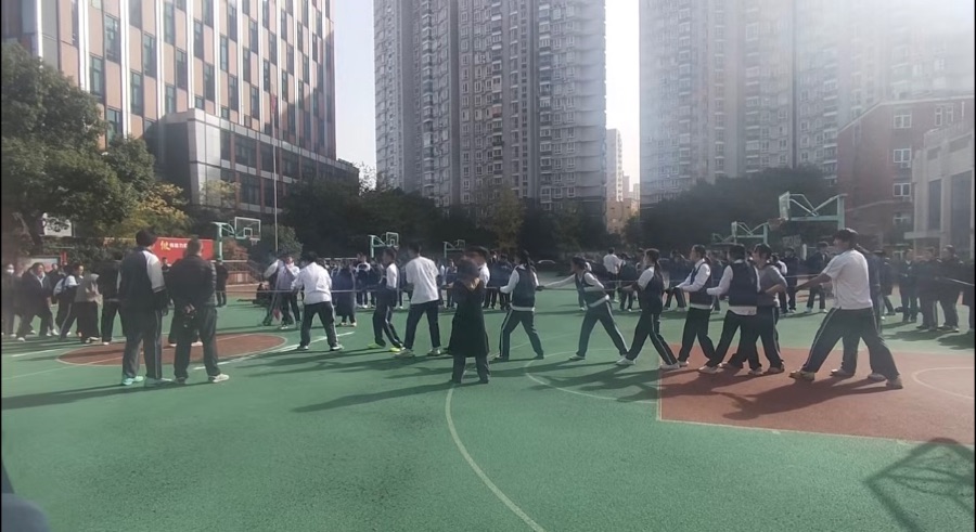 轮到我们班级了 同学们都饱足精神 以一个好的状态参加比赛 拔河的力量 团队的协作 同学们齐心协力 往后憋足劲拉 不懈努力下 赢了一场 操场上的鼓掌声不断