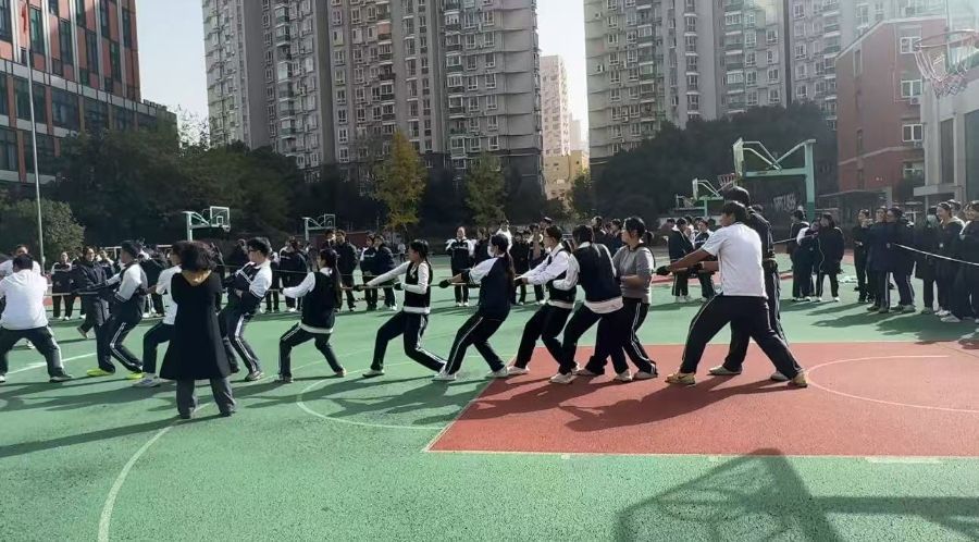 “加油!加油!”操场上的呐喊声震耳欲聋。