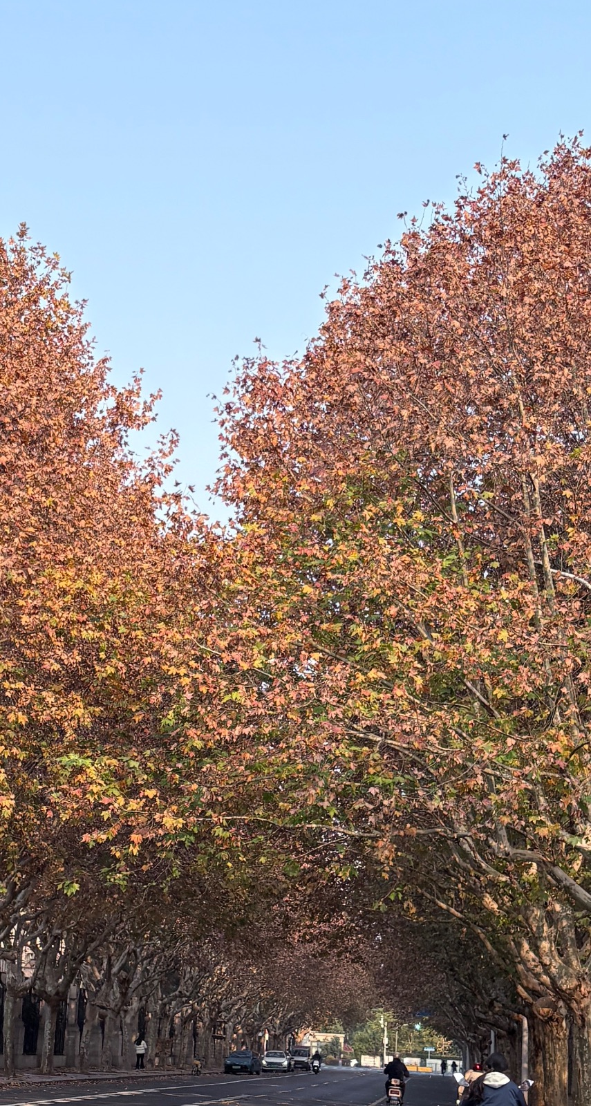 秋阳暖融融地洒在街边,两排银杏树便披上了金装。细长的枝干遒劲伸展,扇形的叶子像被精心染过,黄得透亮,黄得耀眼。风一吹,叶片簌簌作响,打着旋儿飘落,铺成一条金黄的小径。行人路过,总会放慢脚步,有的弯腰拾起一片,夹进书页里,留住这短暂的秋意。车辆驶过,带起一阵风,更多黄叶翩跹起舞。这路边的银杏树,不张扬,不喧哗,却把秋的韵味,悄悄融进了城市的烟火里。这棵银杏树,默默装点着街道,也藏着我关于秋日的小欢喜。