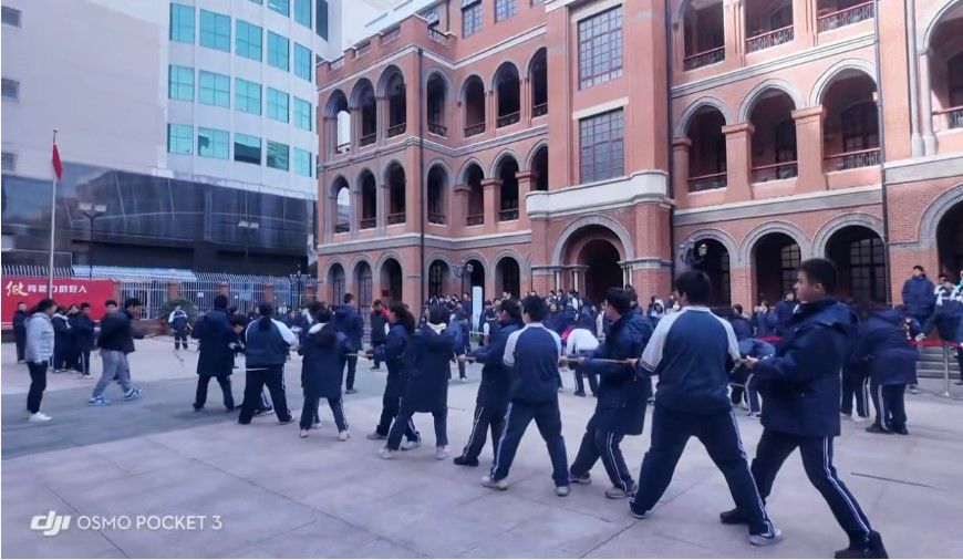 看到绳子慢慢向对方移动,我的手心冒出了汗,喊得更用力了,喉咙都有些发哑。前排的小雨踮着脚尖,脸憋得通红,声音尖利却充满力量;后排的男生们组成了 “呐喊小队”,吼声震彻操场。在我们的助威声中,选手们仿佛注入了新的力量,脚步稳稳扎根,身体后倾,红绸带一点点向我们这边挪。