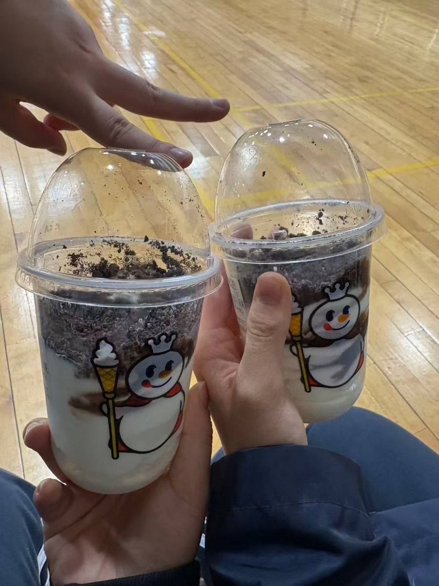 我们围上去,七嘴八舌地选了店门口的风扇下坐成一排。他捧着托盘回来时,塑料杯壁已凝满细密水珠。他分发得很慢,像是完成某种重要仪式——香草味给总考第一的班长,巧克力味给篮球队中锋,芒果粒最多的那杯给了刚跑完八百米、脸颊通红的体育委员。
