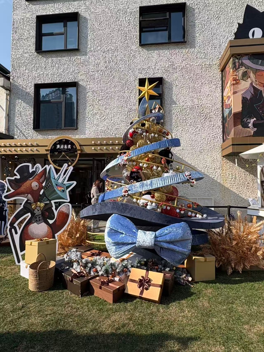 走近了,才会发现——树梢闪烁的不是彩灯,是《EVA》里使徒核心的橘色光环;挂满的不是球,是《鬼灭之刃》各色呼吸法的日轮刀镡,在暗处幽幽发亮。“星星”顶端的,是初号机的紫色头颅,微微侧着,仿佛下一秒就要仰天嘶吼。