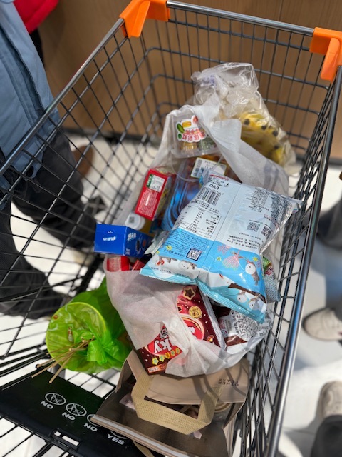 推着满满一车的战利品,金属购物篮被各式零食、食材填得满满当当,这一刻的幸福感,是超市赋予的独特色彩。透明包装袋里的膨化零食印着可爱的卡通图案,红包装的糖果裹着喜庆的纹路,还有绿色塑料袋里新鲜的食材,层层叠叠堆在一起,像一座小小的快乐山丘。