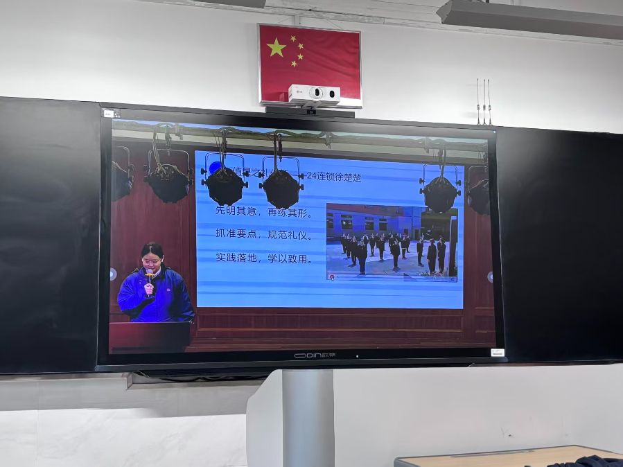 班会还细化了劳动要求:清扫要无死角,执勤要守岗尽责。最后,值星明星颁奖环节将班会推向高潮,获奖同学分享经验,激励大家以榜样为镜,在劳动中践行礼仪,争做有担当的学子。