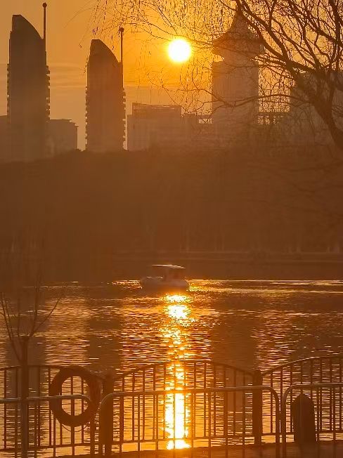 公园的长椅还有一点温热。湖面铺满了碎金子,被风吹得一晃一晃的。远处有人牵着孩子往回走,笑声断断续续飘过来。柳条懒懒地垂着,梢头染成淡红色。我坐在这儿什么也没想,就看太阳一点点往下沉,天边的云从橘黄变成灰蓝。身后亮起了路灯,余晖还舍不得走,在湖心晃了晃,才慢慢散开。真好,这个傍晚是完整的。