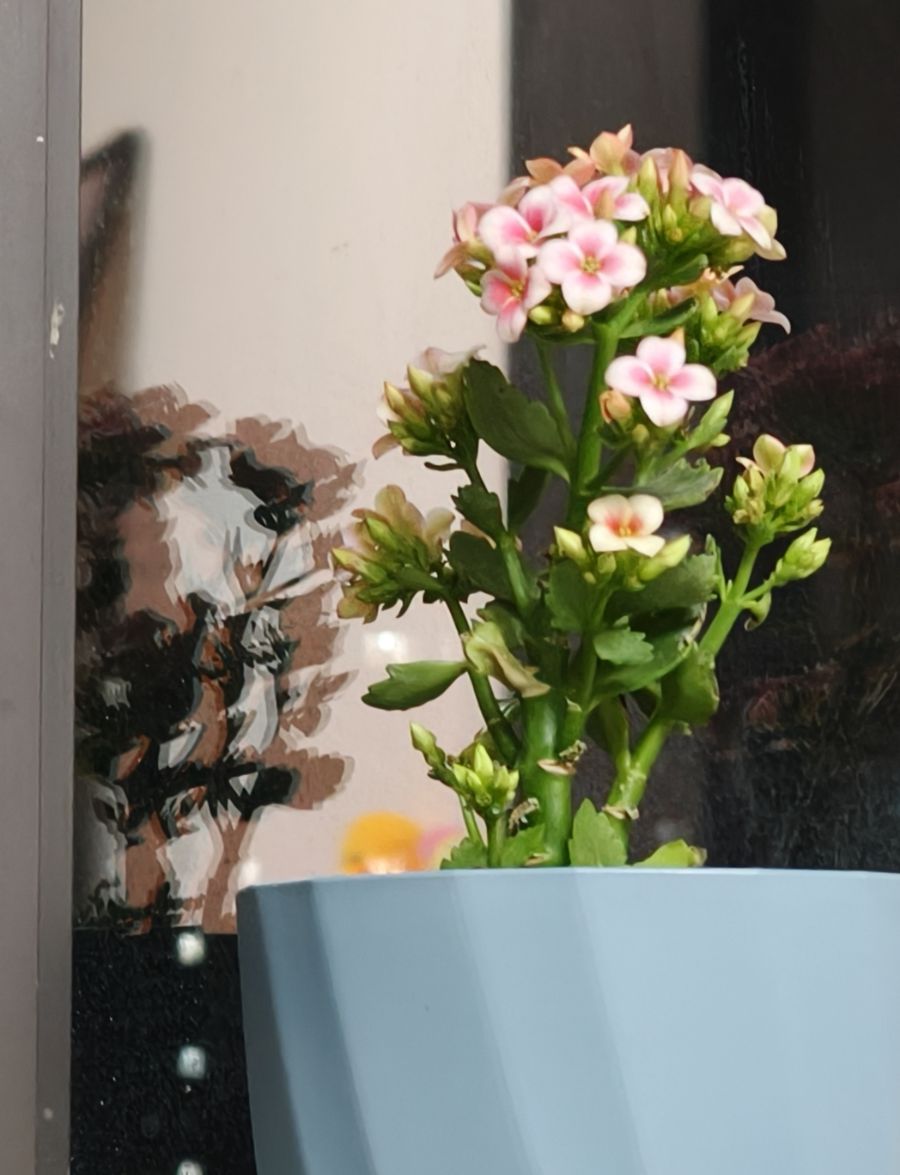 窗外的阳光照进来,正好落在花瓣上,粉得更透亮了。家里多了这一抹粉色,感觉整个屋子都鲜活了不少。吃饭时忍不住多看几眼,心里美滋滋的。