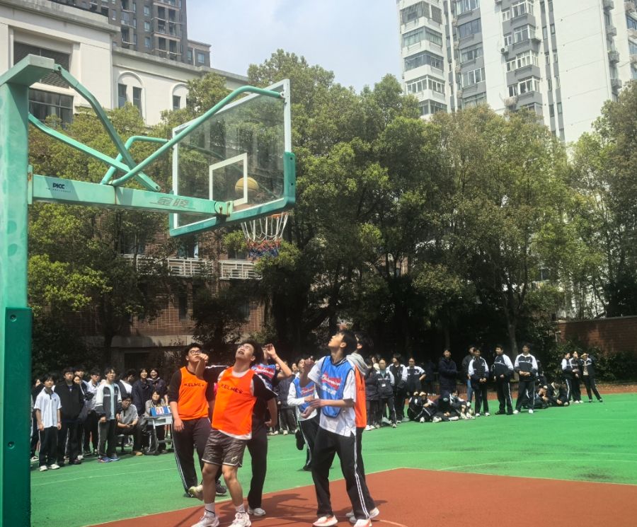 滚春日的阳光慷慨地铺满绿色的塑胶篮球场,一场热血的班级篮球赛正酣。球员们穿着橙红与蓝白的对抗背心,仰头紧盯空中悬停的篮球,身体微微前倾,随时准备起跳争抢,每一个眼神都写满了专注与不服输的少年气。场边围满了观战的同学,有的振臂欢呼,有的屏息凝神,校服的黑白与各色便装交织成青春最鲜活的底色。篮球撞击篮板的脆响、球鞋摩擦地面的声音、此起彼伏的呐喊,在校园的树影与楼宇间回荡。这是独属于少年的滚烫时光,是汗水、热爱与并肩的模样,每一次起跳都在书写青春最热烈的注脚,每一声欢呼都在定格校园里最难忘的瞬间。