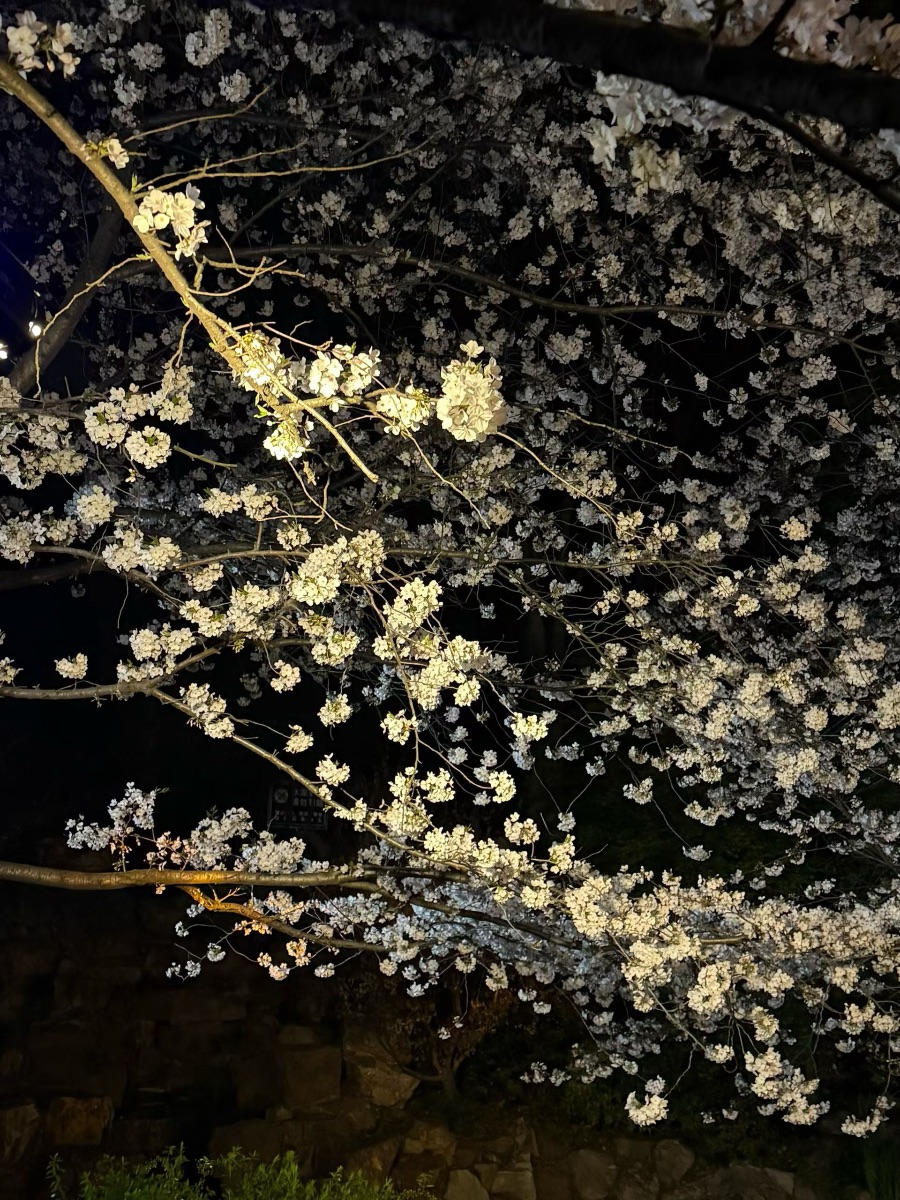 夜幕低垂,白日的喧嚣渐渐散去,独留一树夜樱静静绽放。漆黑的夜色里,繁密的花枝舒展蔓延,层层叠叠的白色花瓣簇拥在一起,在微光映照下如雪般纯净,似雾般朦胧。晚风轻轻拂过,花枝微微摇曳,细碎的花瓣簌簌飘落,空气中弥漫着淡淡的清甜花香。没有喧嚣打扰,只有静谧与温柔相伴,站在花下抬头凝望,满树繁花如同星光坠落枝头,治愈了所有疲惫。这独属于春日夜晚的浪漫,诗意而美好,在心底留下温柔的印记。