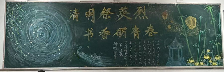 黑板上的涟漪晕开思念,竹影与纸灯映着少年的敬意。以“清明祭英烈,书香砺青春”为题,我们用粉笔绘出山河,用诗词寄寓追思。